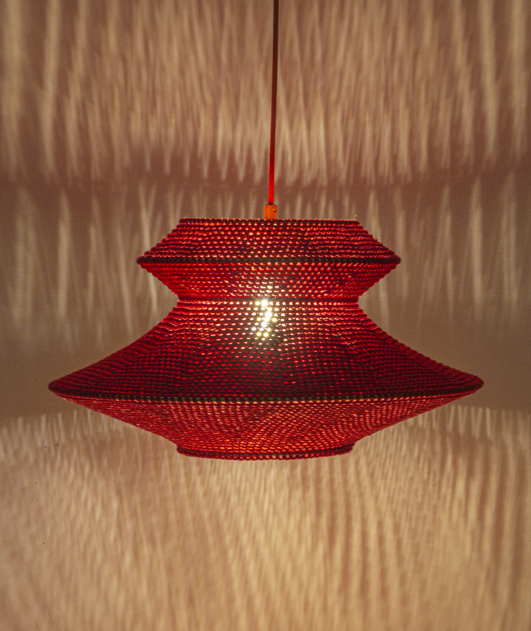 Tığ işi el örgüsü yöntemi ile üretilen, tavan tipi sarkıt aydınlatma ürünüdür.